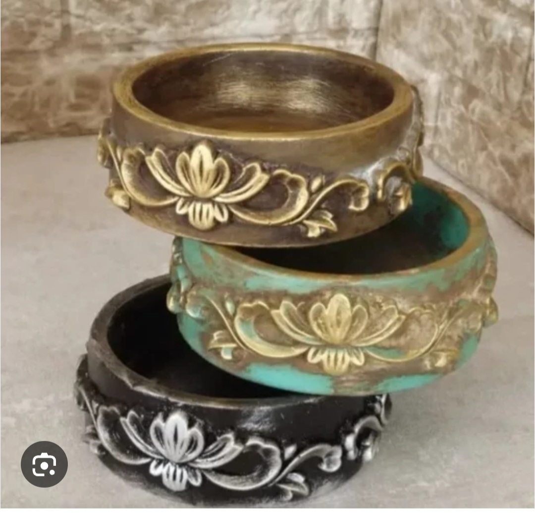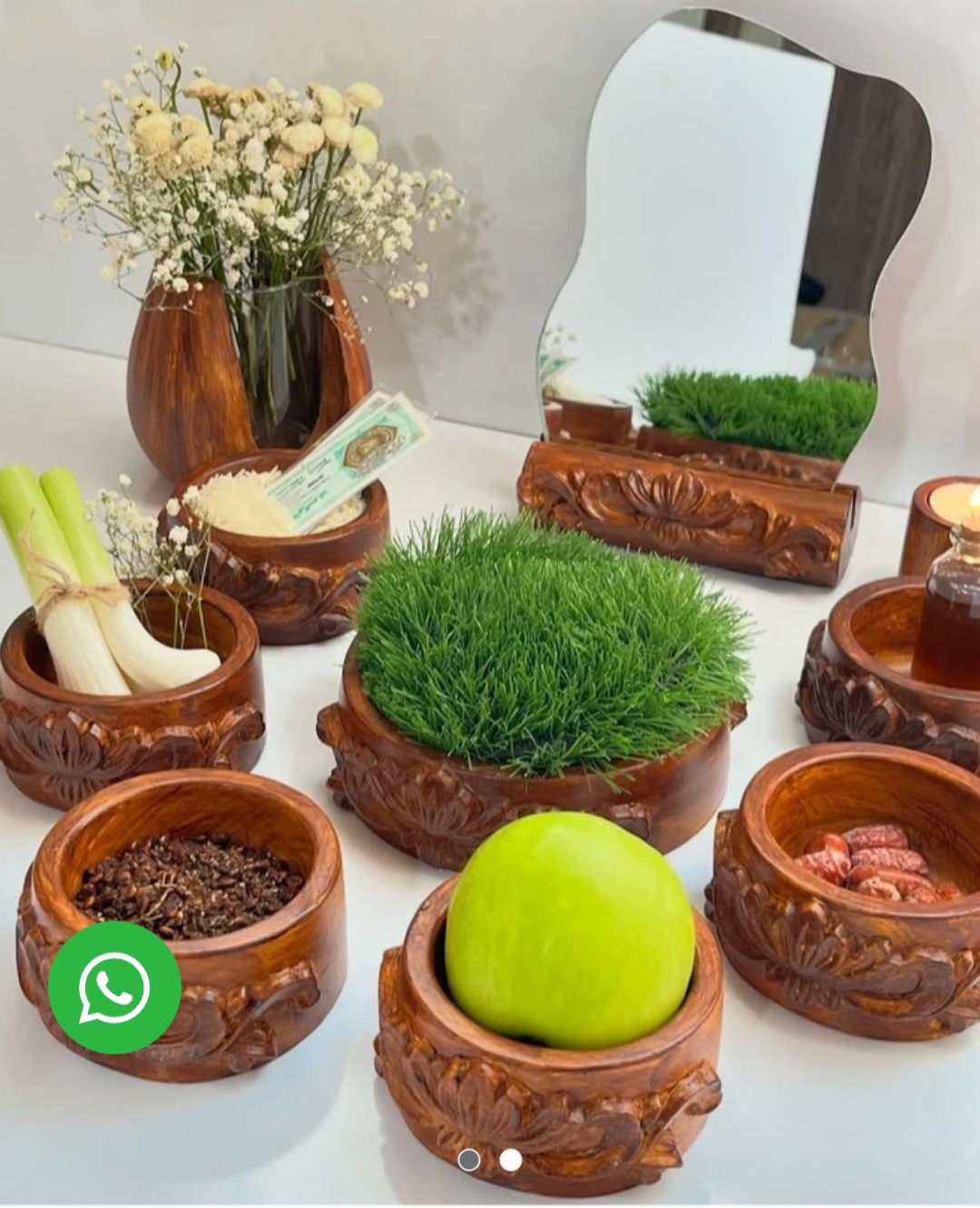 جاشمعی ۱۲ سانت _ظرف سبزه ۱۵ سانت و ارتفاع ۴ _ظرف هفت سین ۱۰ سانت و ارتفاع ۴/۵_استند آینه ۱۴ و ارتفاع ۴ سانت