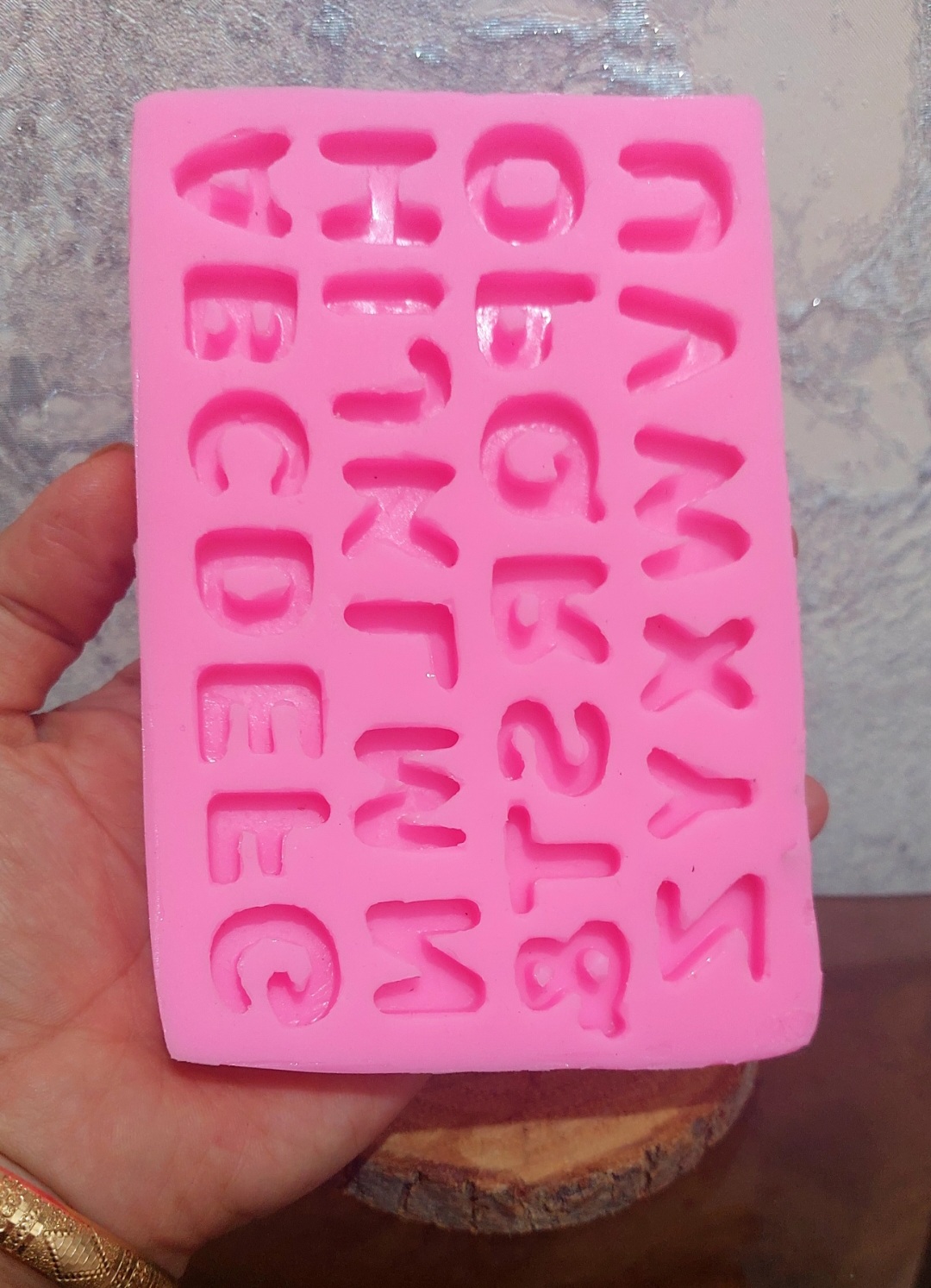 این قالب برای کارای سن مصنوعی و خمیری مناسبه مثل خمیر فوندانت و خمیر حنا. شکلات و صابون حروف کنار سینی حنا با همین قالب کار شده.