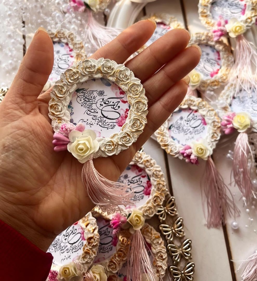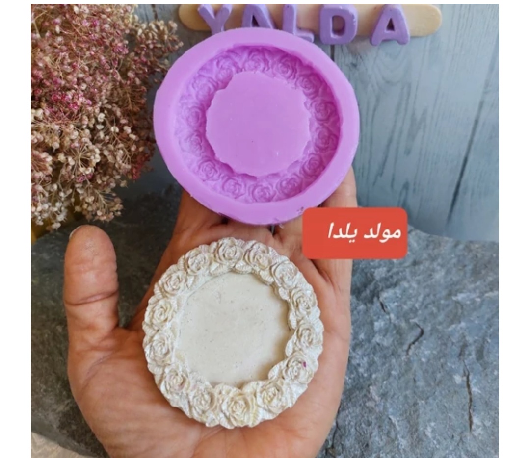 قالب سیلیکونی قاب گرد گلدار .این قالب برای تولید گیفت عروسی و ست بله برون خیلی قشنگه .در عکس ها نمونه گیفت عروسی هست.