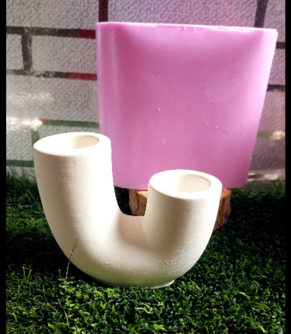قالب سیلیکونی شمعدان یومناسب ساخت با پودر سنگ هنری و رزین پلی استر این کار قشنگ میتونید با گلدان دونات ست کرد .