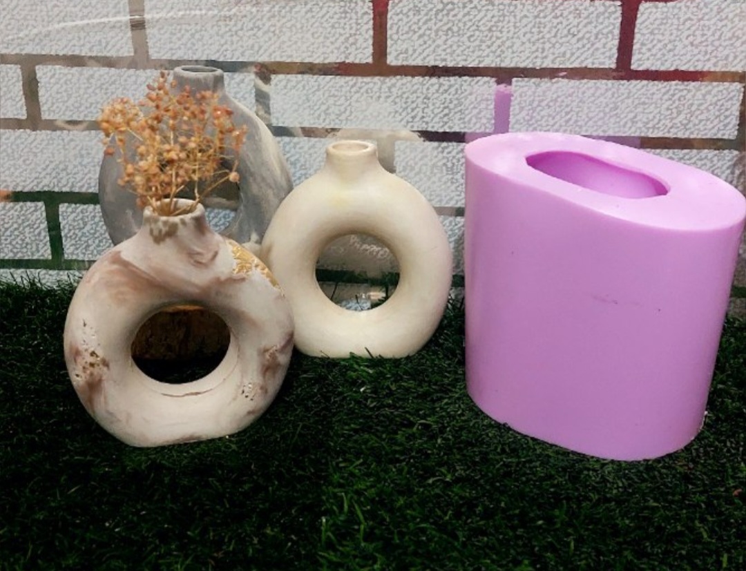 قالب سیلیکونی دونات ده سانتی که برای ساخت گلدان سنگی با پودر سنگ هنری عالیه .
