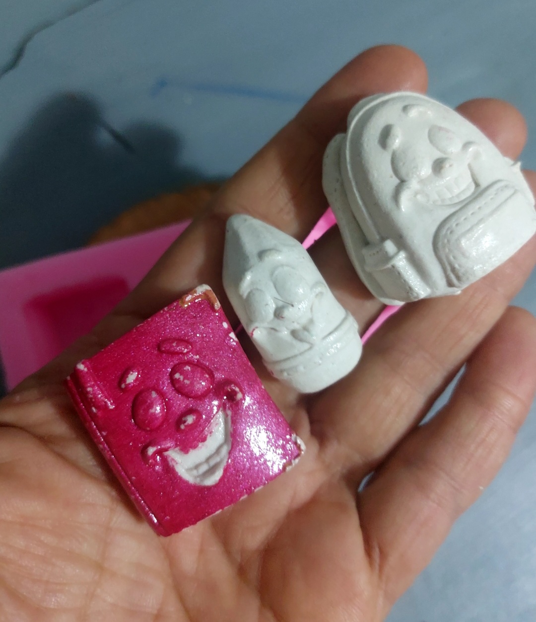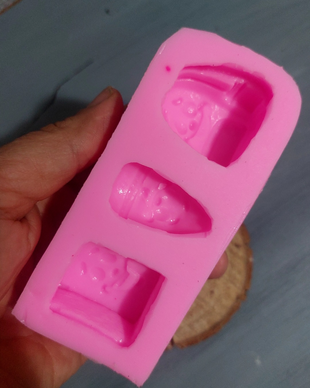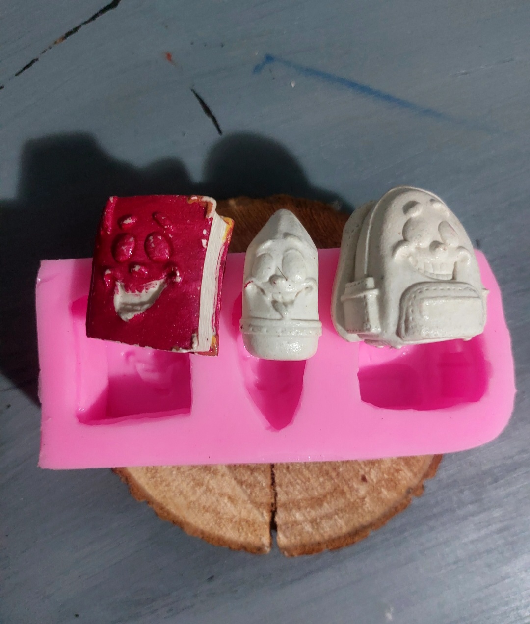 قالب سیلیکونی ست مدرسه(کیف و کتاب و مداد )خیلی دلبره برای شمع و صابون روز دانش آموز کار گیفتی اقتصادی .ابعاد کتاب و کیف ۳ سانت و مداد ۳/۵ سانت