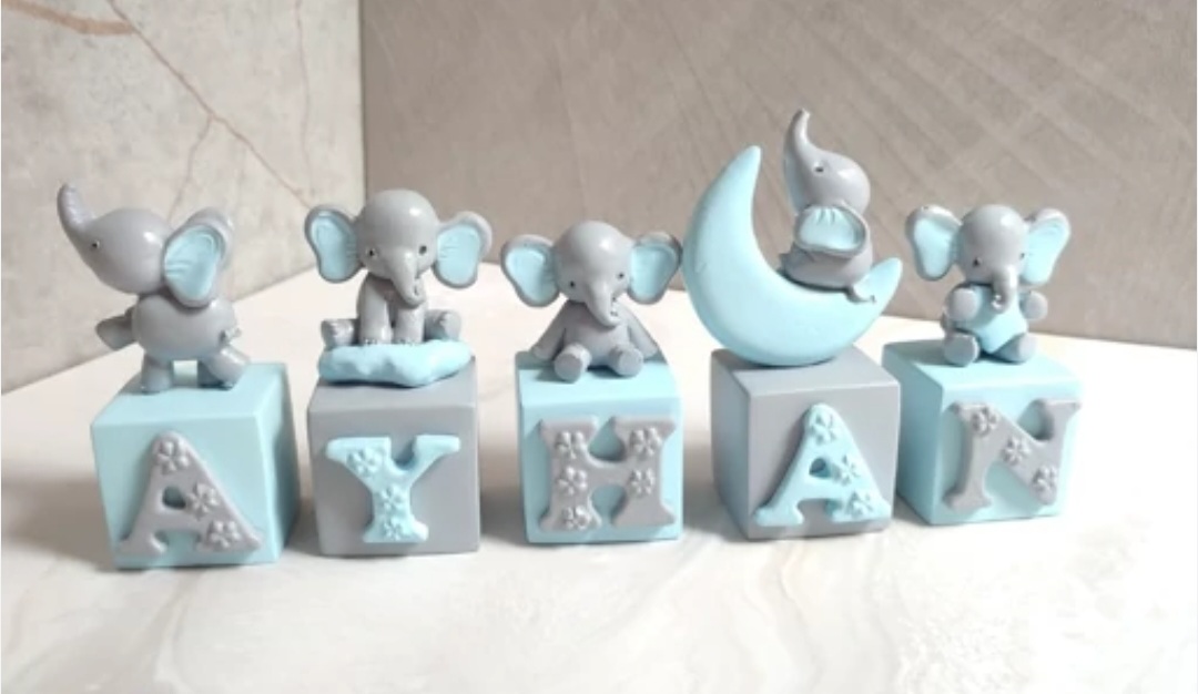قالب سیلیکونی ست ۵ تایی فیل مناسب استند کودک .که برای تزئین اتاق کودک و سیسمونی خوشکله .که شامل ۵ تا قالب فیل هست .