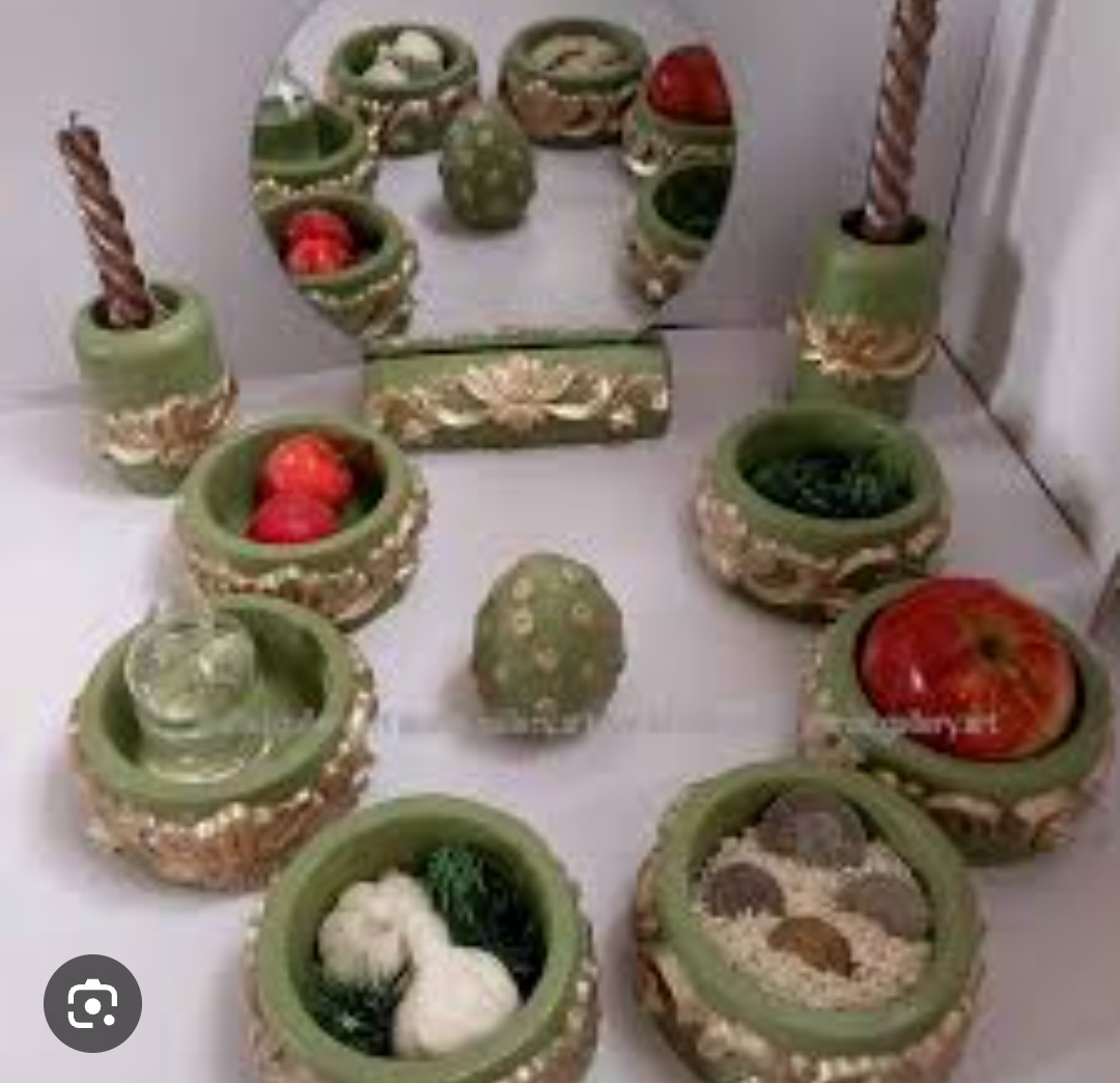 جاشمعی ۱۲ سانت __ظرف هفت سین ۱۰ سانت و ارتفاع ۴/۵_استند آینه ۱۴ و ارتفاع ۴ سانت
